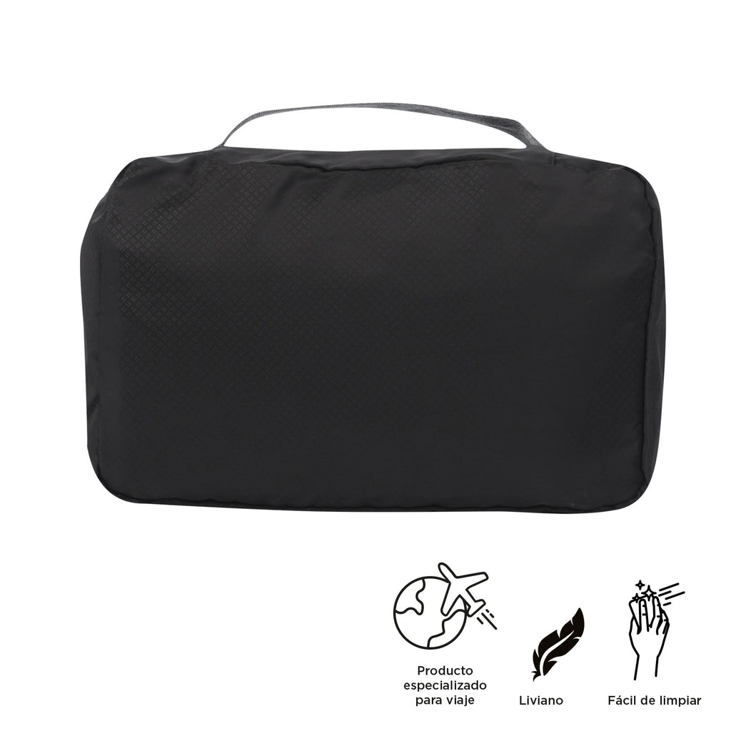Make your travels easier with the All In bathroom organizer! This practical and convenient organizer is compact, with a hook to hang anywhere, and unfolds downward for added convenience. Its mesh zippered compartments and elastic bottle pockets keep everything in place. Made from lightweight, easy-to-clean, and durable material, perfect for any trip. Don’t miss the chance to get one!