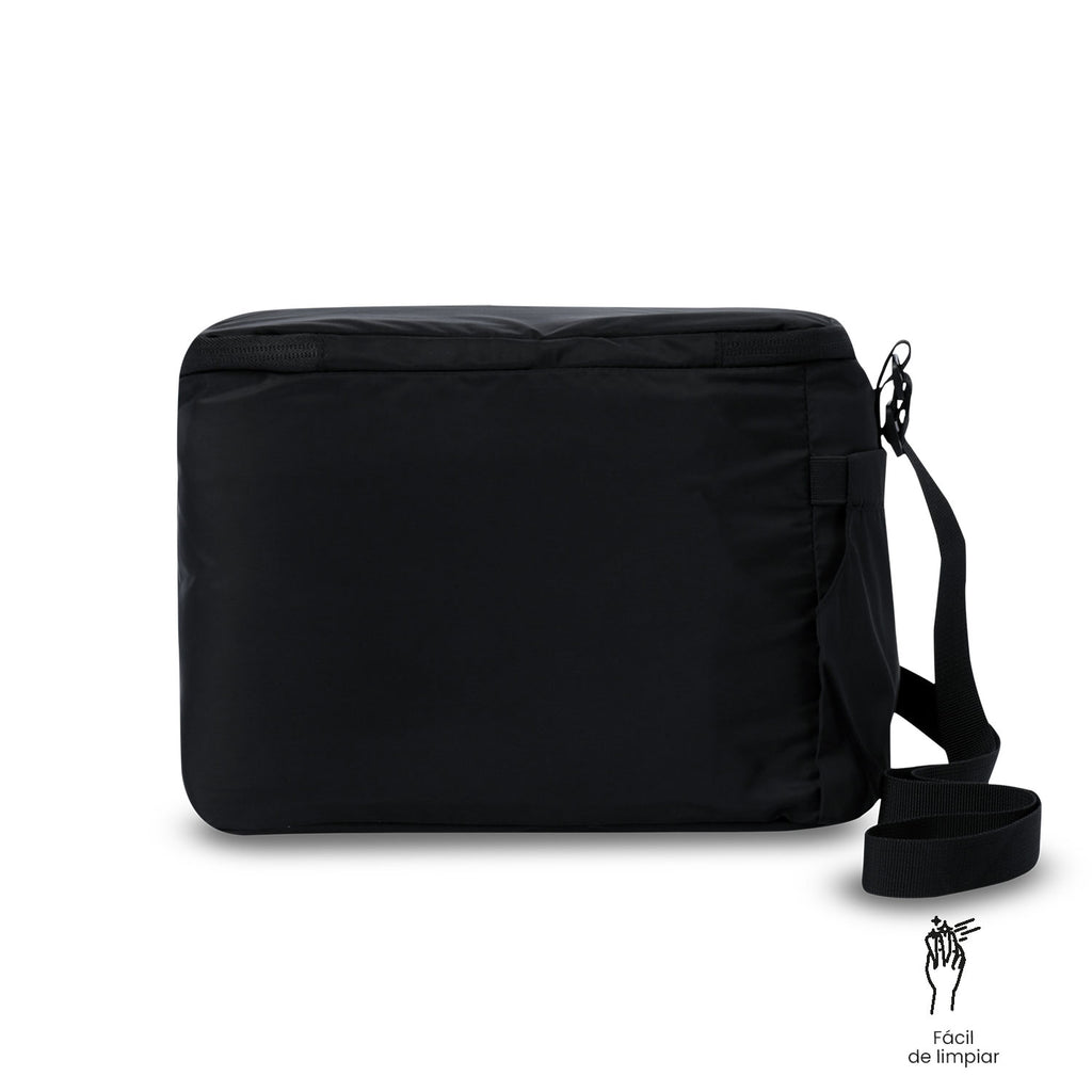 Optimize your routine with the Campus lunch bag! Its large size includes an auxiliary pocket, a bottle compartment, and an internal elastic band to keep it in place. Made of durable polyester, it repels liquids and is easy to clean. The thermal insulation keeps food at temperature for up to 5 hours, if kept closed and depending on the weather. Rubber branding detail as a finishing touch. Keep your meals fresh!