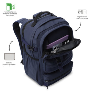 Adapt to any environment! The Spa backpack combines tactical functionality and durability thanks to its polyester construction with coating and RPET lining made from recycled bottles. It includes a 15.4-inch laptop compartment, organizer with key holder, chest straps, ergonomic back panel, mesh pocket, rain protection, space for a bottle, and multipurpose strap. Ready for your routine!