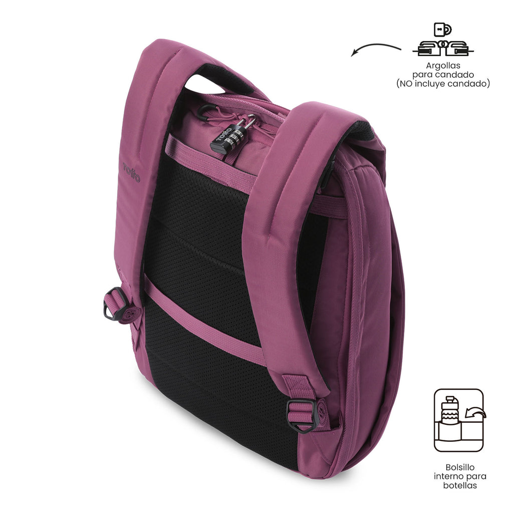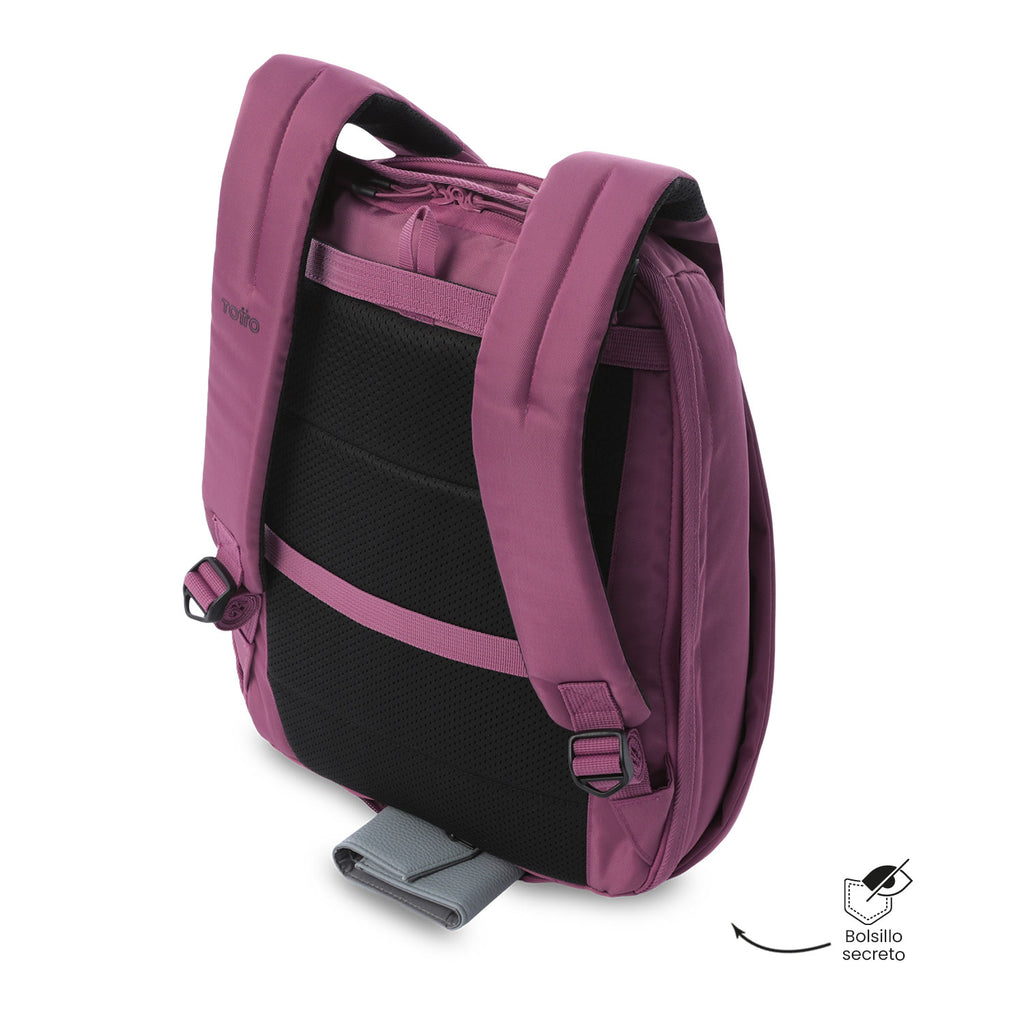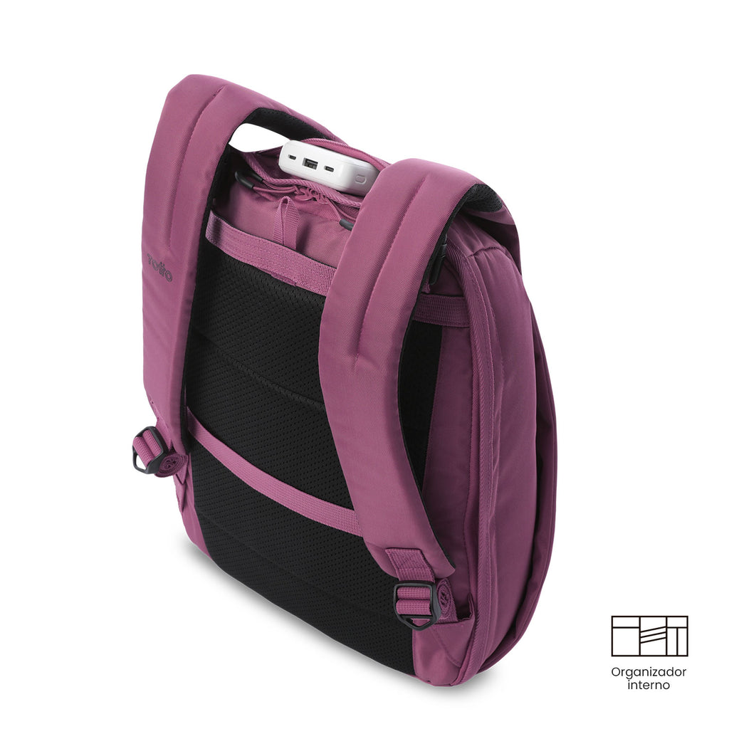 Protect what matters! The Twill security backpack is designed with hidden zippers that enhance the protection of your belongings. Its medium-sized structure includes a laptop pocket for up to 14 inches, 180° opening, secret pocket, clip for a rolling system, multipurpose elastic, and loops for a padlock. It also features an internal compartment for a thermos or umbrella, organizer, zippered pocket, and reinforced carabiner. Move around without worries!