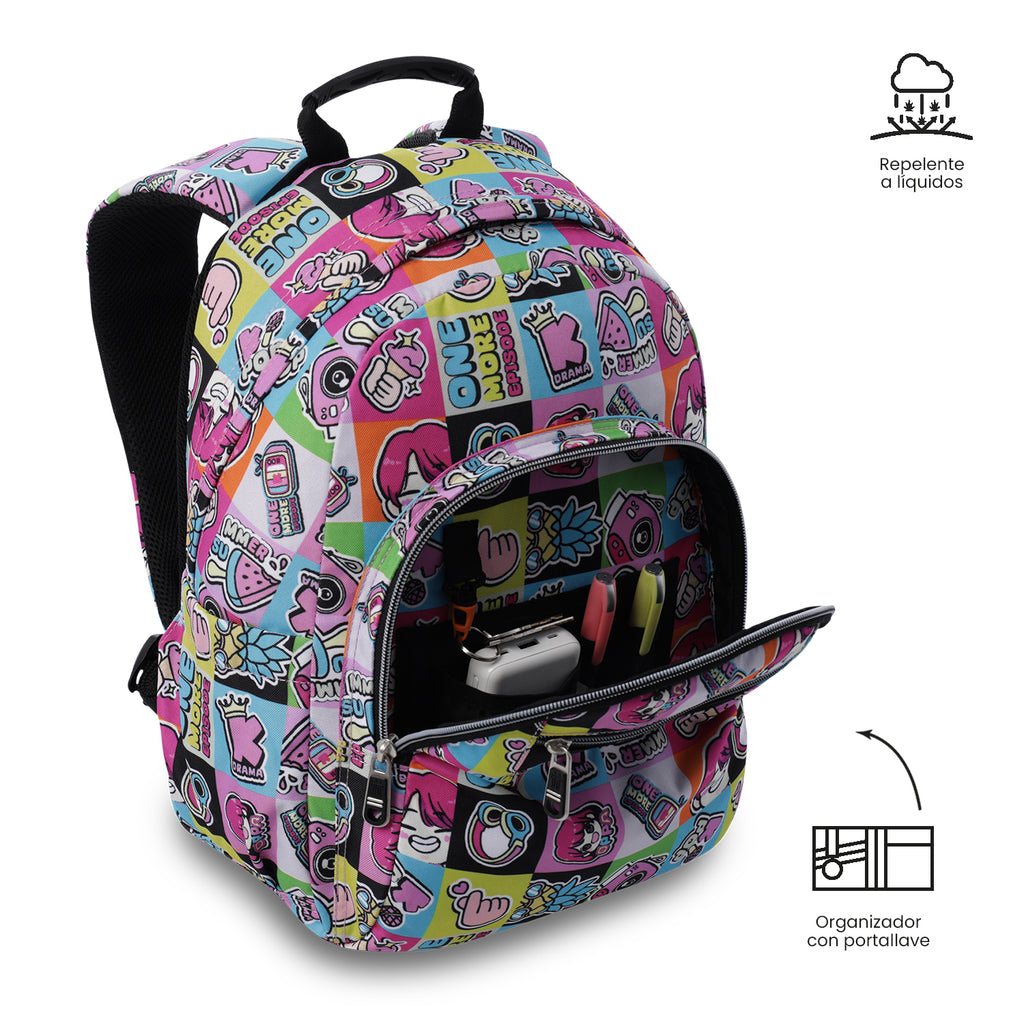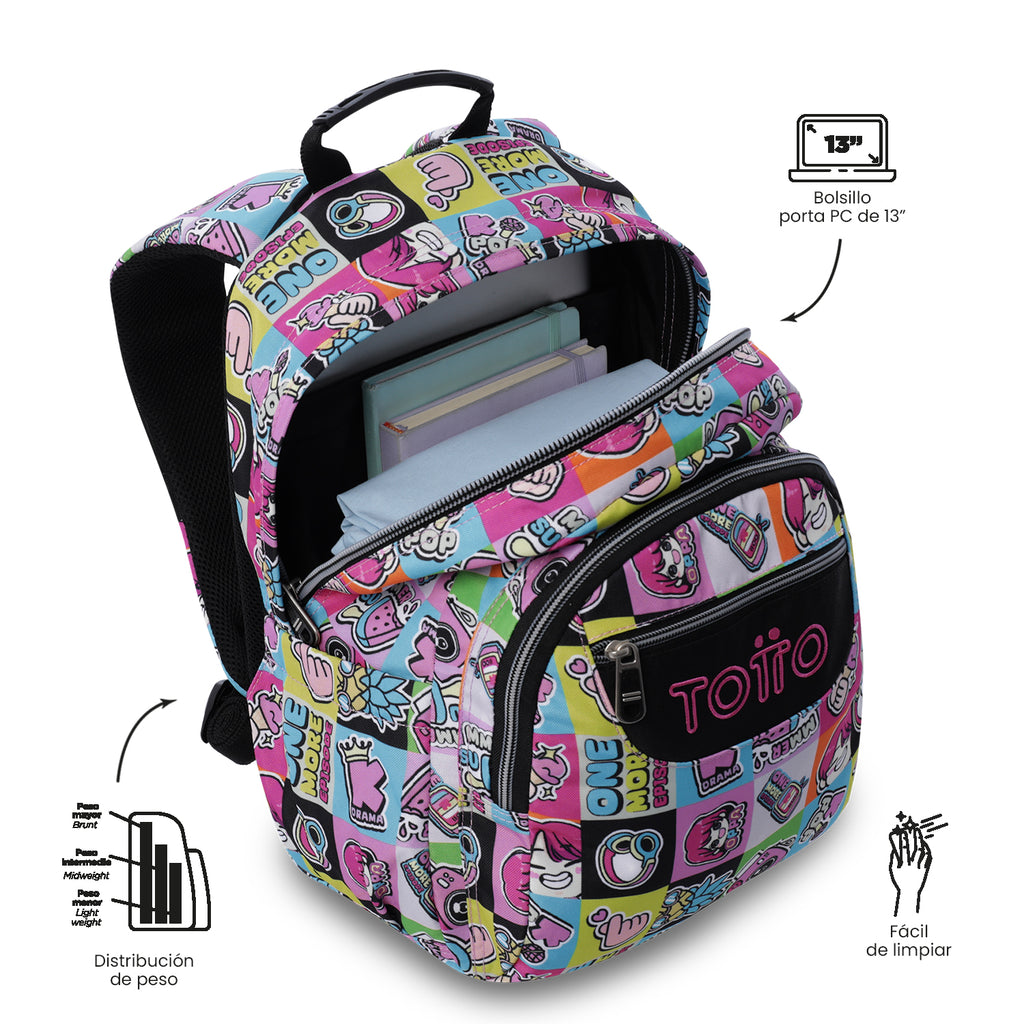 Choose functionality and sustainability! This student backpack features a 13-inch laptop compartment and medium capacity. Made from RPET canvas from 9 recycled bottles, it includes an organizer with a key holder, side pockets for a bottle or umbrella, and two front quick-access pockets. The ergonomic straps with air mesh provide maximum comfort. Get yours now!