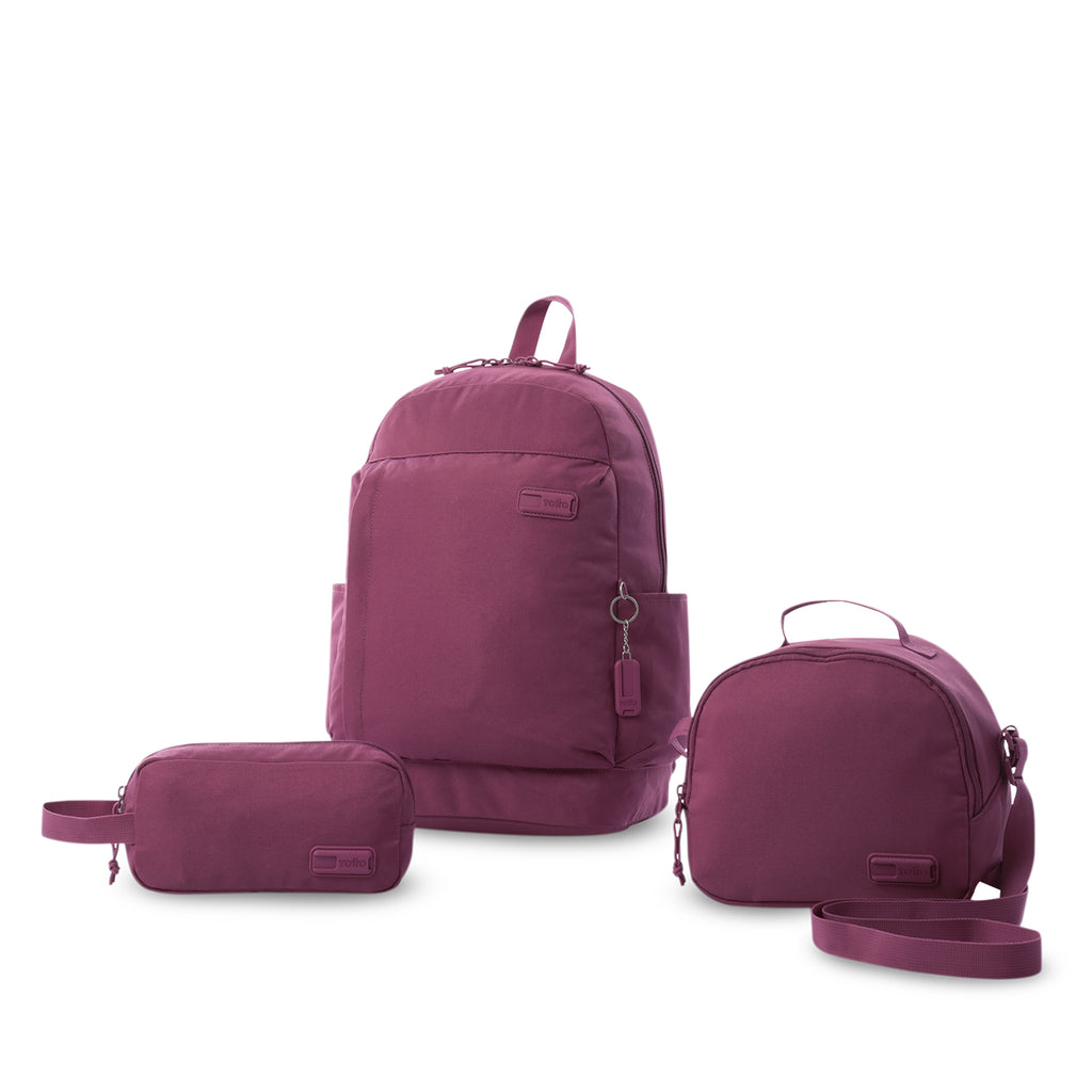 The X3 Yuno youth set is perfect for women looking for style and organization. This combo includes a large backpack with a 14" laptop pocket, a bottle pocket, a key holder, and a simple organizer, ideal for taking everything to school. It also comes with a lunch bag with an easy-to-clean inner lining and a practical pencil case. Made from premium materials, they are abrasion-resistant. Take it and organize your routine in style!