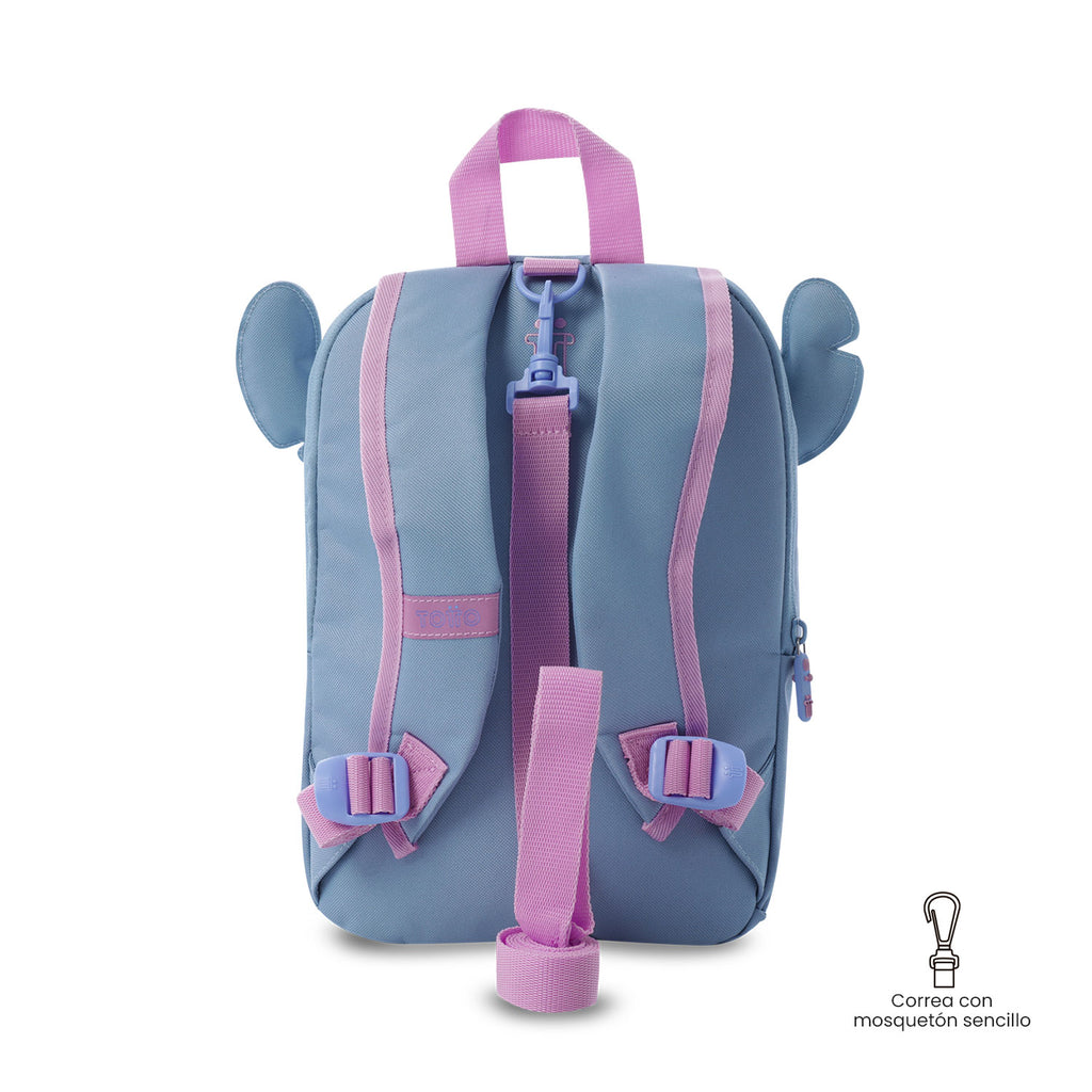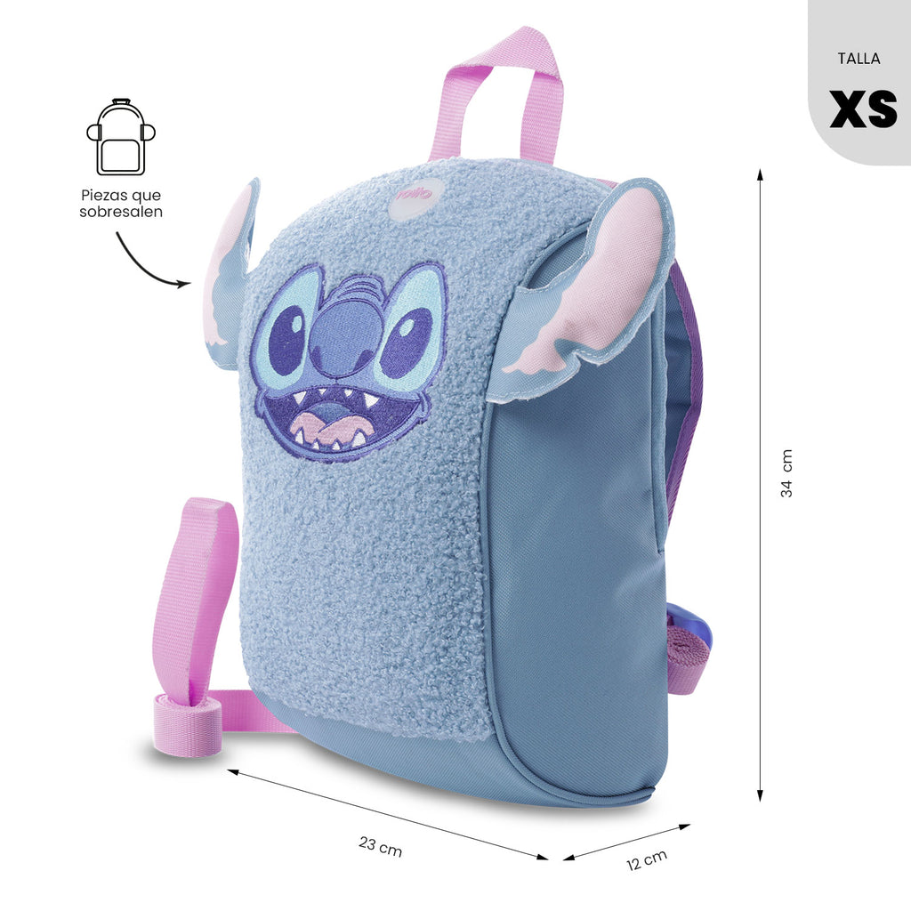 Make her school day even more special! The small Stitch On The Beach backpack for girls features a plush embroidered character, a main compartment with double zipper, side pockets for bottles, a top handle, and a front pocket with a zipper. Its glittery front and adjustable padded straps complete its unique design. Perfect for keeping everything organized and full of style!