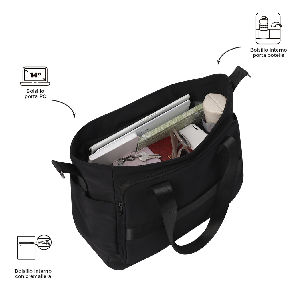 Organize your days with the Sahara Duffel bag! This women's bag is perfect for taking with you to the gym, the office, or on your travels. Made from tear-resistant polyester, it includes a 16-inch laptop compartment, a spacious bottom pocket ideal for clothes or shoes, and internal zippered pockets. It also features a key holder, a removable strap with a cushion, and a handy hook to hang it on any surface.