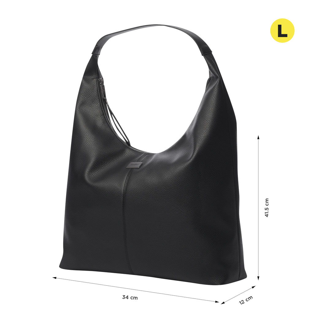 Stand out with the Smooth shopping bag! This large accessory made of grained PU leather (synthetic leather) is not only practical but also sophisticated and high-quality. Designed for everyday use, it includes a 14-inch laptop compartment, a key holder, and an inner zippered pocket for added security. Its metal details, RPET lining, and textured finishes make it a versatile and modern accessory. Make it part of your look now!