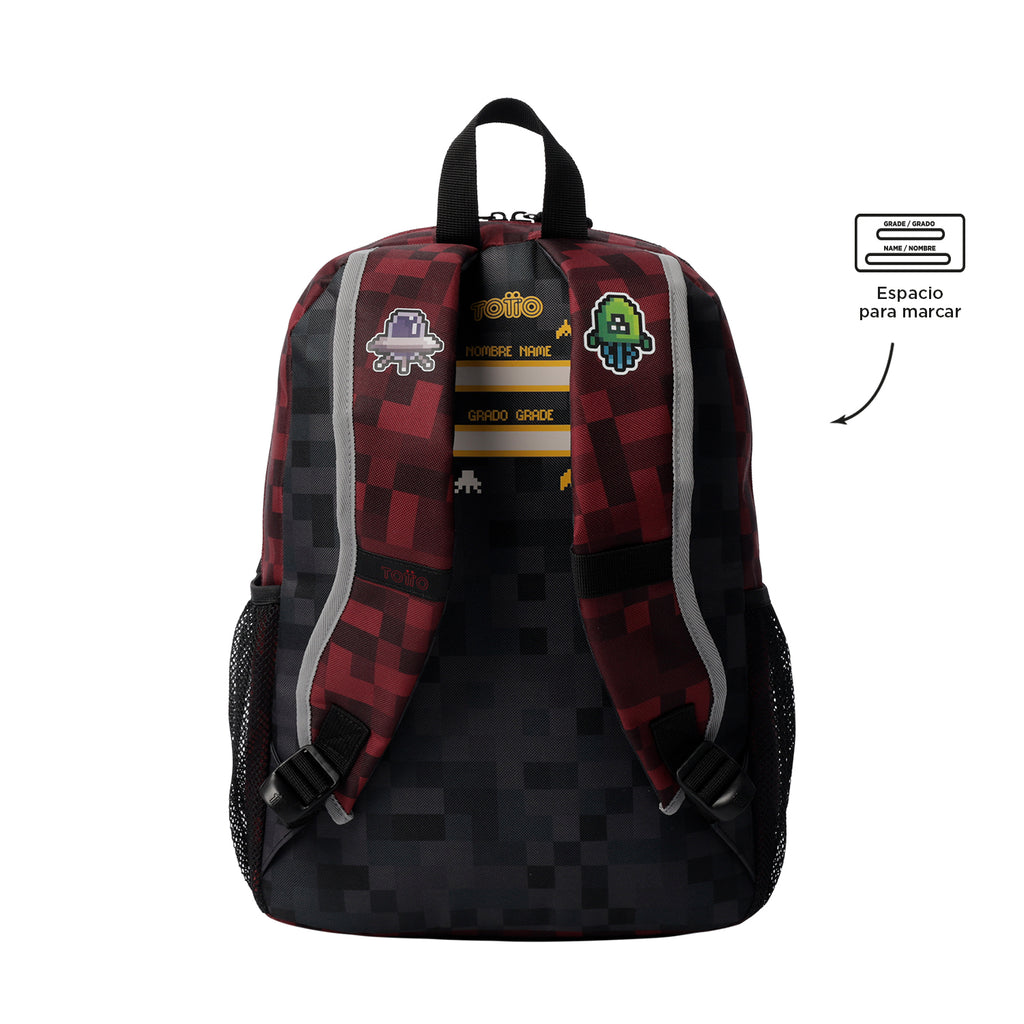 Bring functionality and fun to school with the Digibot backpack! The children's design, made of polyester, includes decorative patches that can be removed and relocated to customize it to their liking. It has a main compartment with double zipper closure, side bottle holder pockets and a front pocket with organizer. Its padded straps and top handle provide comfort. Includes an eye-catching robot keychain!