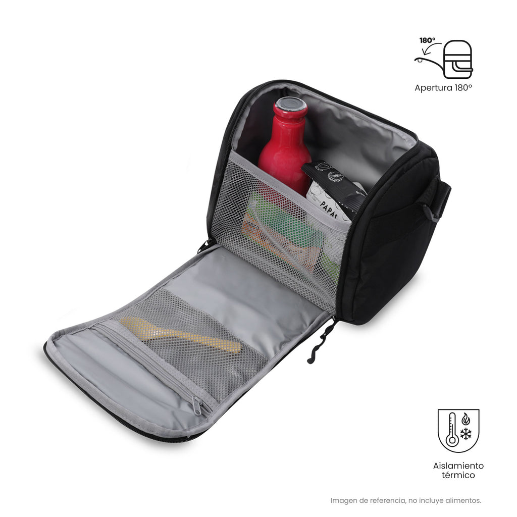 Carry your food safely and fresh! The large Grafito thermal lunch bag features a 180° opening, internal mesh pockets, thermal insulation for up to 5 hours, and a wheel strap. Its liquid-repellent, easy-to-clean lining, along with the recycled polyester exterior, provide durability and lightness. Pack with smart organization. Keep your lunch fresh hassle-free.