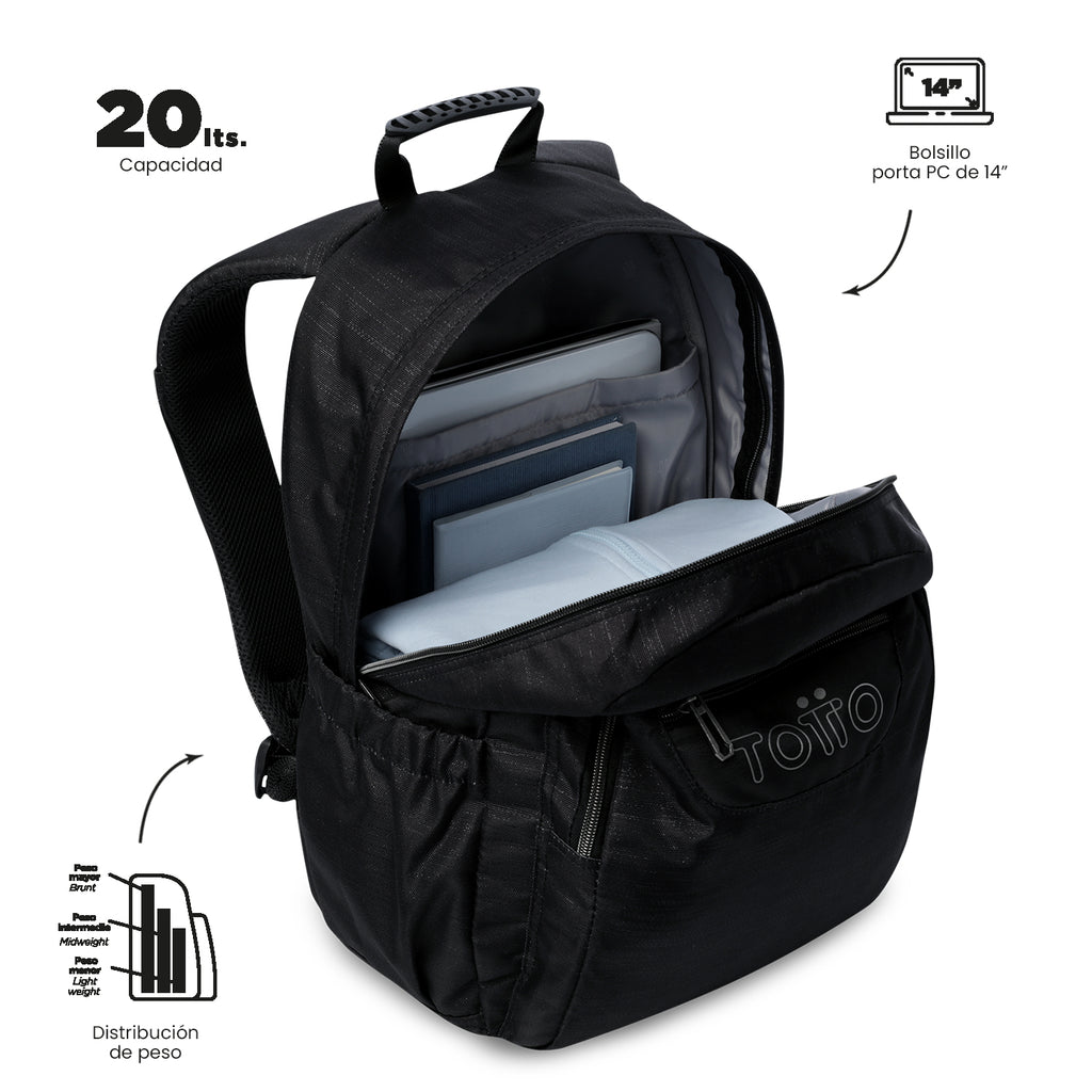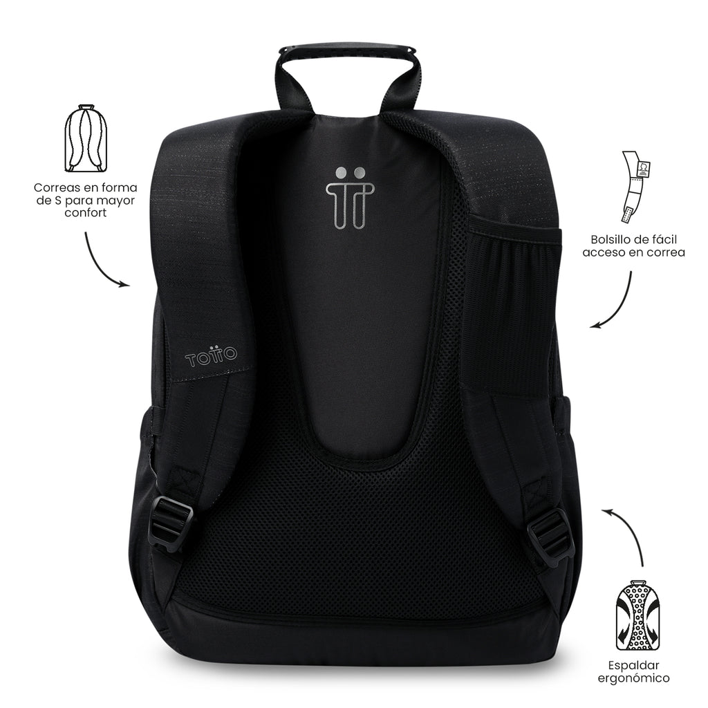 Organise your day with the Acuarela Neo youth backpack! It includes a pocket for your laptop up to 14 inches, an organizer with a key holder, a bottle pocket, and an easily accessible strap pocket for your ID or card. Its S-shaped straps and ergonomic back with Air Mesh distribute weight for maximum comfort. Made from RPET canvas with shiny threads, liquid-repellent and easy to clean, with a capacity of 20 liters. Carry it and make a difference in your school routine!