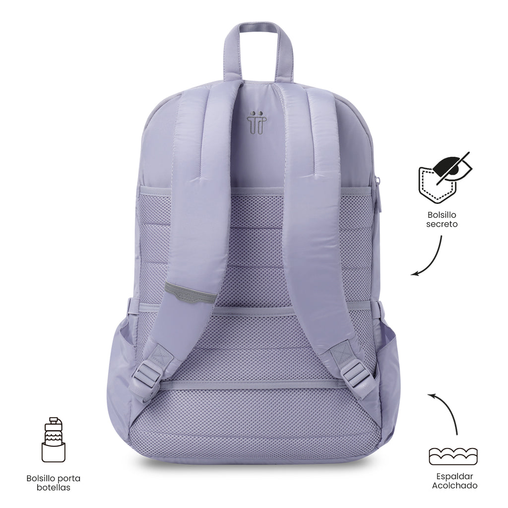 Optimize every journey! The Campus backpack is made of lightweight, padded polyester, making it durable and comfortable for demanding days. Its spacious interior includes a compartment for laptops up to 16 inches, a secret pocket, key holder, space for water bottles, glasses, umbrellas, or other accessories, a zipped organizer, and a loop for a wheel system. It comes with a rubber keychain with the logo. Keep things organized effortlessly!