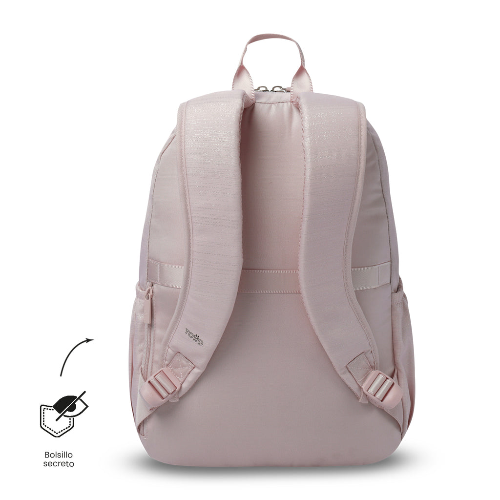 Organise your day in style! The Modena M2 Shiny youth backpack is made of RPET polyester with shiny threads, adding durability with a modern touch. It includes a laptop compartment for up to 13 inches, an internal zippered pocket, a bottle holder that hides when closed, an organizer with a key holder, and a rubber keychain. Its compact design makes it perfect for everyday use. Move around hassle-free!