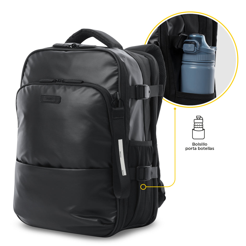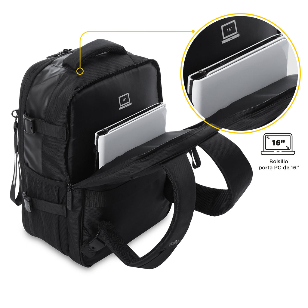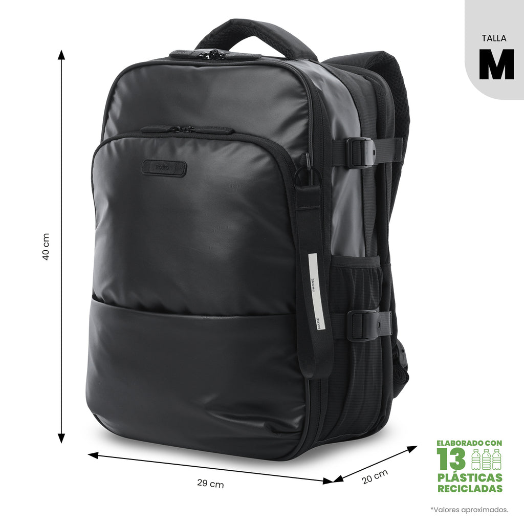 The Trip travel backpack is perfect for flights on any airline in the country! Its compact design allows it to be carried as a personal item, with space for up to 5 changes of clothes depending on the traveler's organization. It includes a special pocket for a 15-inch laptop, adjustable and compression straps for greater stability, and a keychain tag that makes it easy to identify at airports. Travel light and with everything you need!