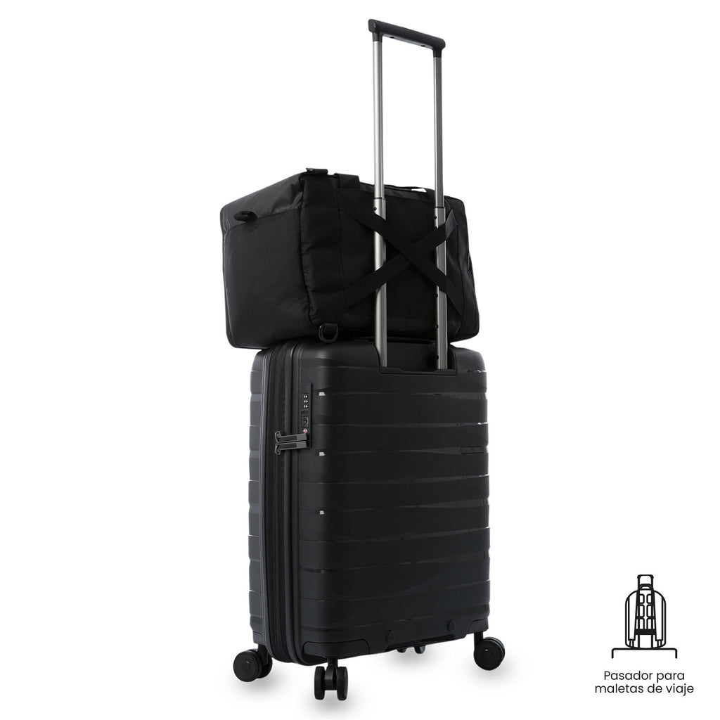 The 2-in-1 Underseat Traveler Bag is perfect as a personal item. Its functional design includes a strap to attach it to the telescopic handle of travel luggage, making it easy to carry. Additionally, it features a removable shoulder strap for added comfort. This practical accessory adapts to your needs while traveling, so check the dimensions with your airline before flying. Make it part of your luggage!