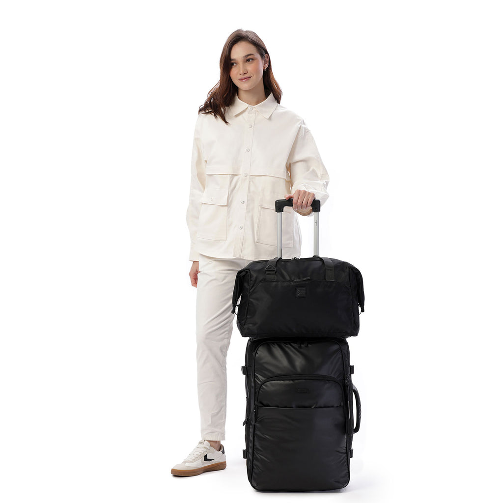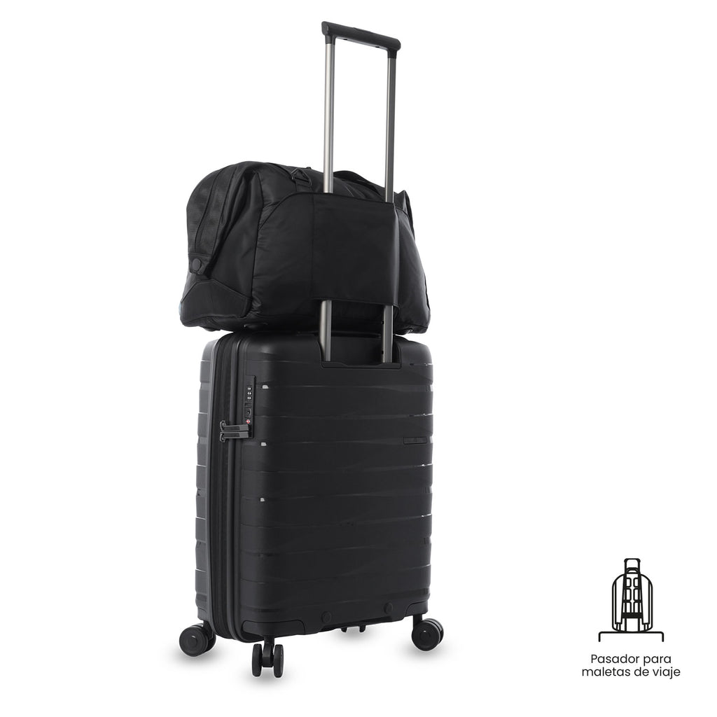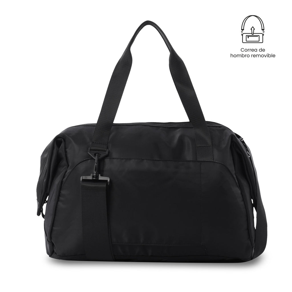 Travel light! The Weekender travel bag is perfect for weekends, as a carry-on, or for going to the gym. It has three compartments, a 15.4" laptop sleeve, side clasps for easy packing, and a removable strap. Its back strap allows it to be attached to a suitcase or used as a pocket. With a sleek design and premium finish, it is part of the Weekender collection. Check the dimensions if you plan to take it on board. Move in style!