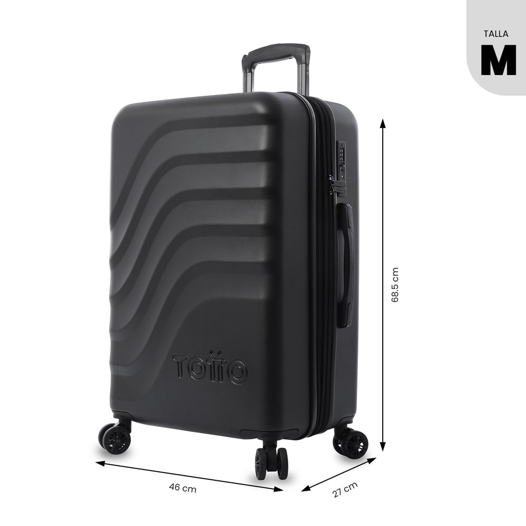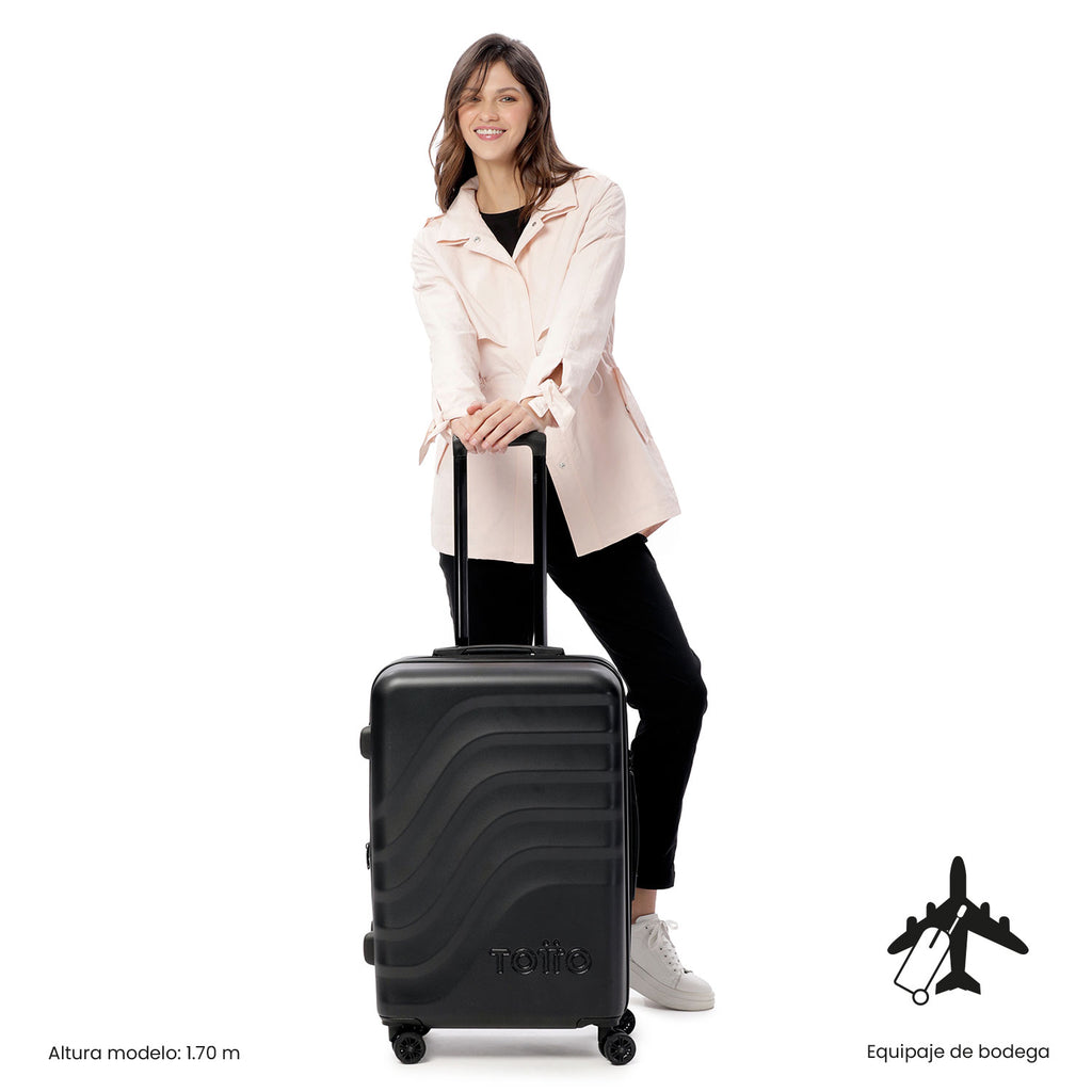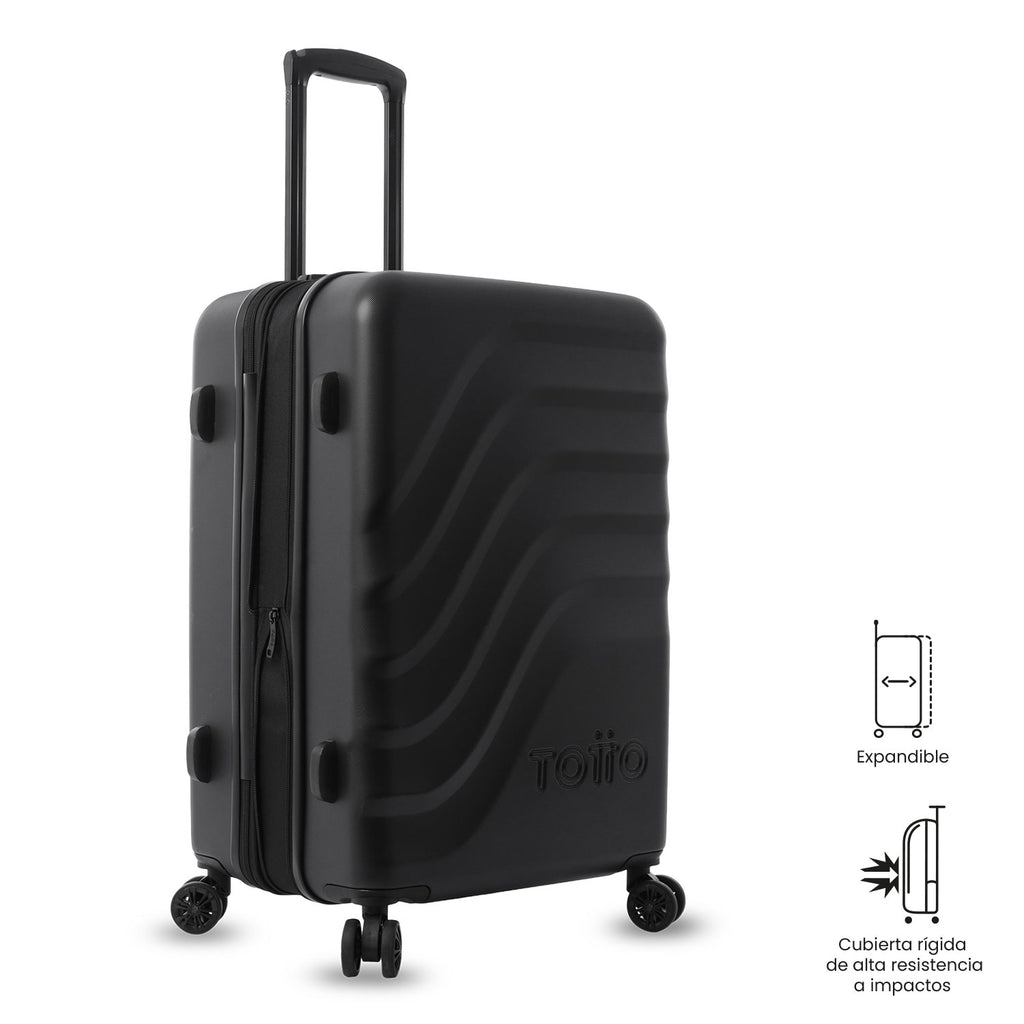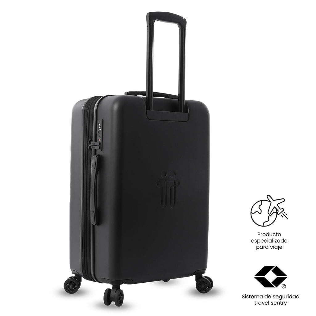 Travel better! The 360 Bazy+ 2.0 medium suitcase is designed for checked luggage, featuring state-of-the-art 360° wheels (8 wheels) that make it easy to move around. Its rigid structure with a unique texture, expandable system, internal organizer, divider, and lining made of RPET material allow you to pack in an organized way. It includes a TSA lock. If you plan to check it in, make sure to verify its dimensions with your airline. Make it part of your journey!