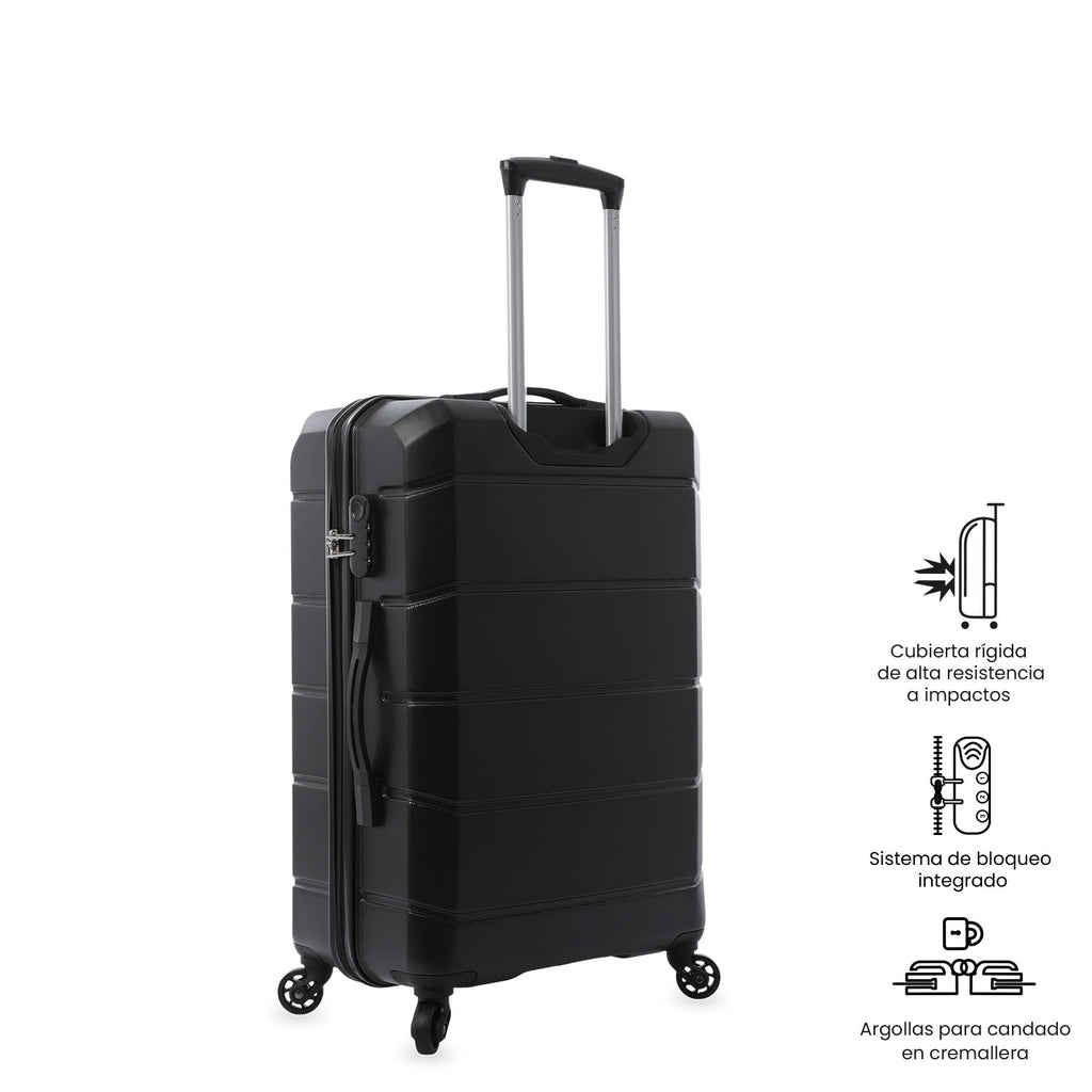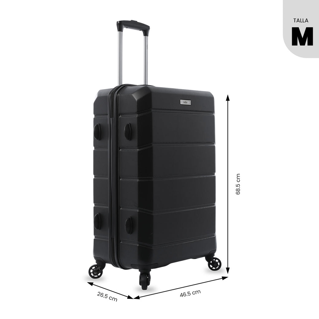 The Rayatta medium travel suitcase is the perfect combination of security and functionality for your trips. With a capacity of up to 23 kg, it includes an internal divider lined with RPET material that separates the compartments, optimizing space, and compression straps that secure your belongings. Its design features 4 360° wheels for easy movement and a 3-digit lock for added security. Take it with you on your next destination!